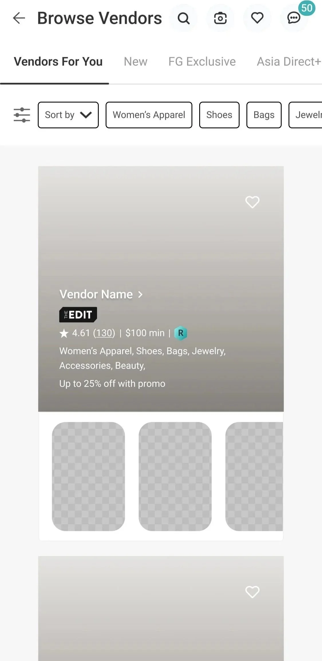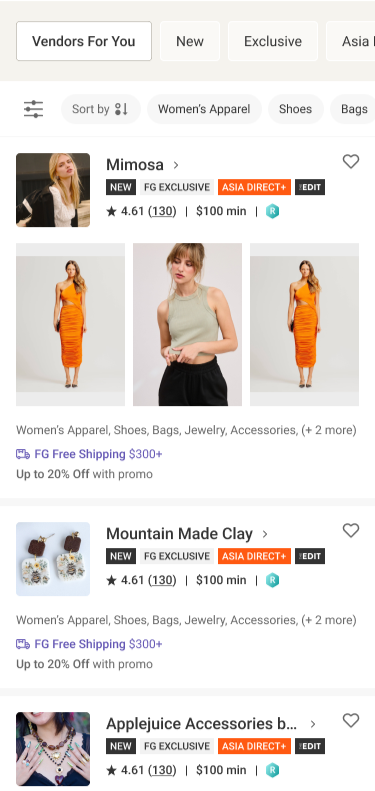 FASHIONGO Vendor page renewal — April 2026Led the mobile UI design and assisted with the web UI design for the FASHIONGO Vendors page: