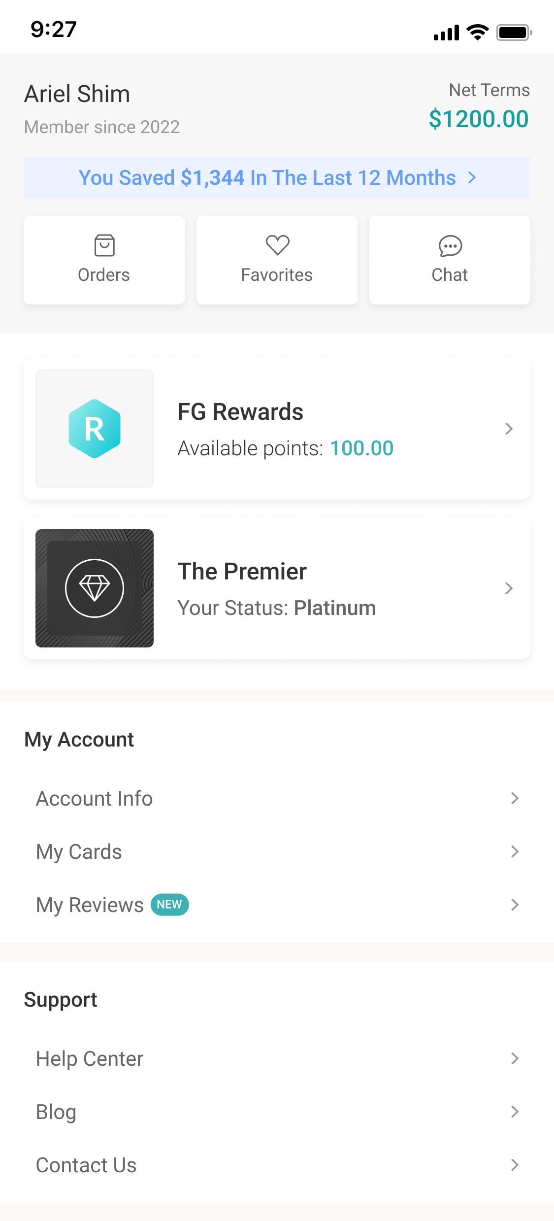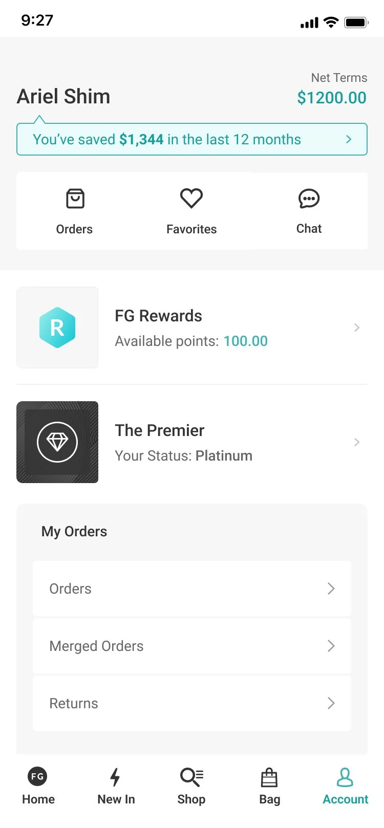 For this project, I was given a wireframe by the UX team and made all UI decision for best promoting FASHIONGO savings through rewards, memberships, and net terms.
