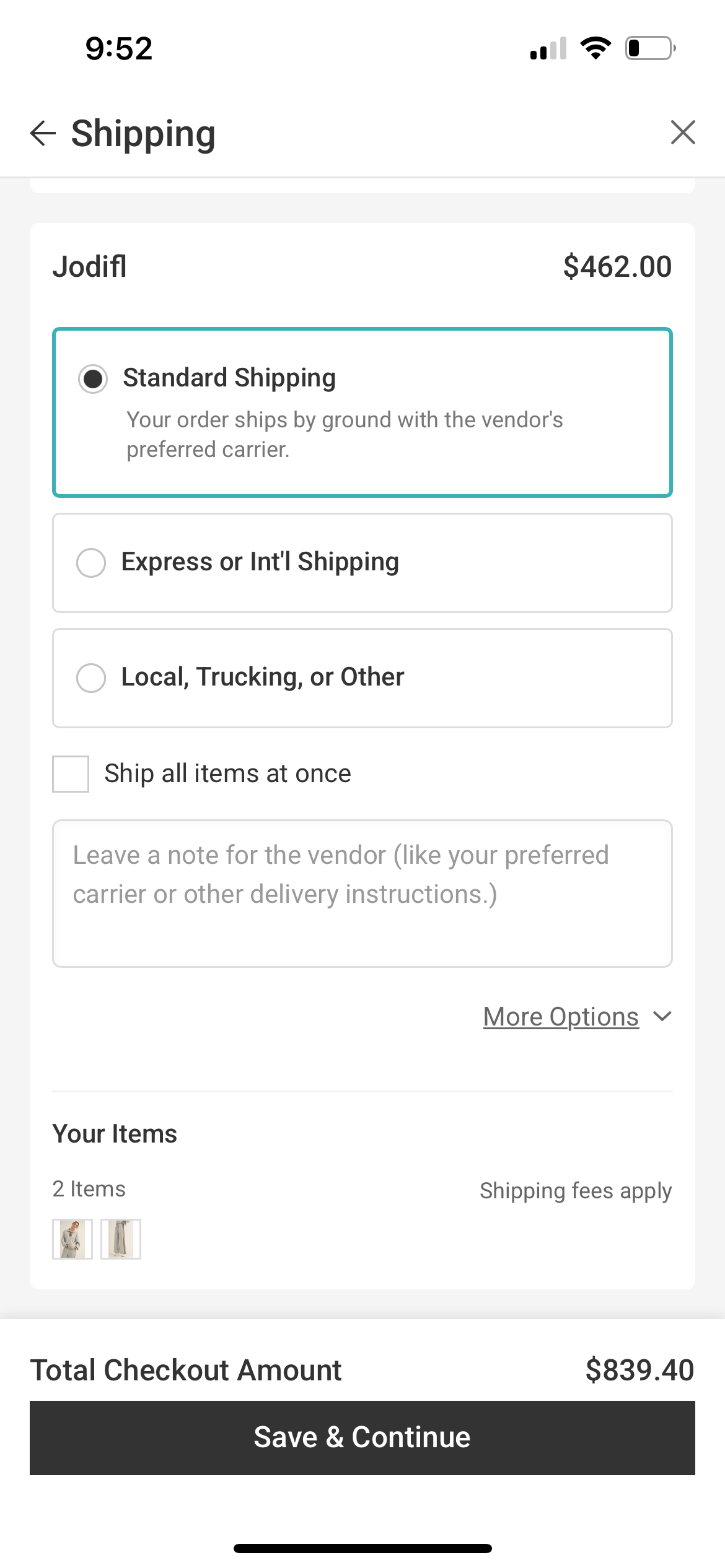 I worked with the UX team and project managers to create a more easily accessible experience for users to customize their shipping—particularly across mobile, where we saw a drop-off of users completing their purchase and instead opting to finish their payment on desktop.